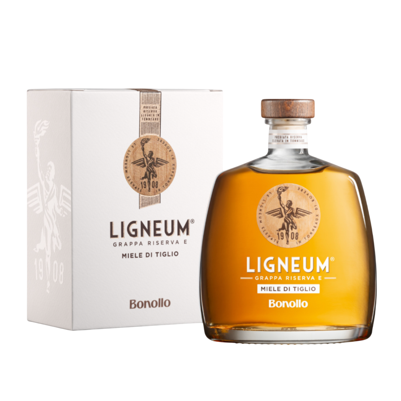 Il carattere inconfondibile di Ligneum Miele di Tiglio deriva dall’unione delle eleganti tonalità balsamiche del miele di tiglio italiano con le intense note fruttate e speziate di una particolare Grappa Riserva Ligneum Bonollo invecchiata in tonneaux di rovere. Nasce così un liquore appagante e inimitabile in grado di unire armonicamente rotondità, corposità, eleganza e franchezza.
